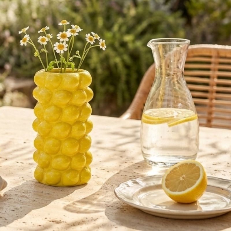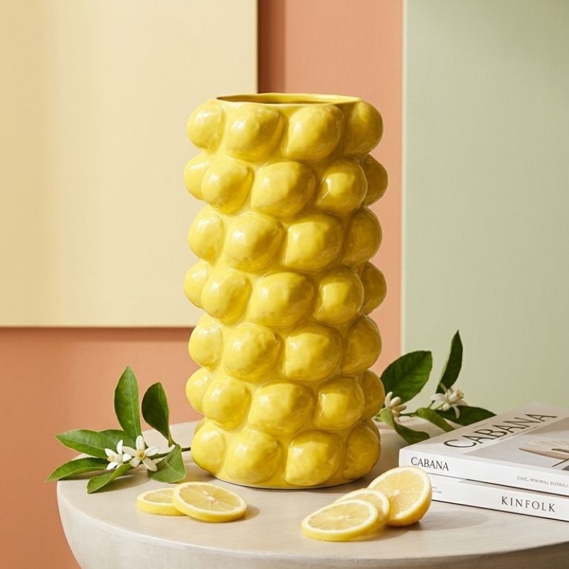 Composé de citrons en relief, il évoque les maisons méditerranéennes, les cuisines ensoleillées et les tables d’été. Ce vase citron attire naturellement le regard et apporte du caractère à une étagère, une console ou un centre de table.
