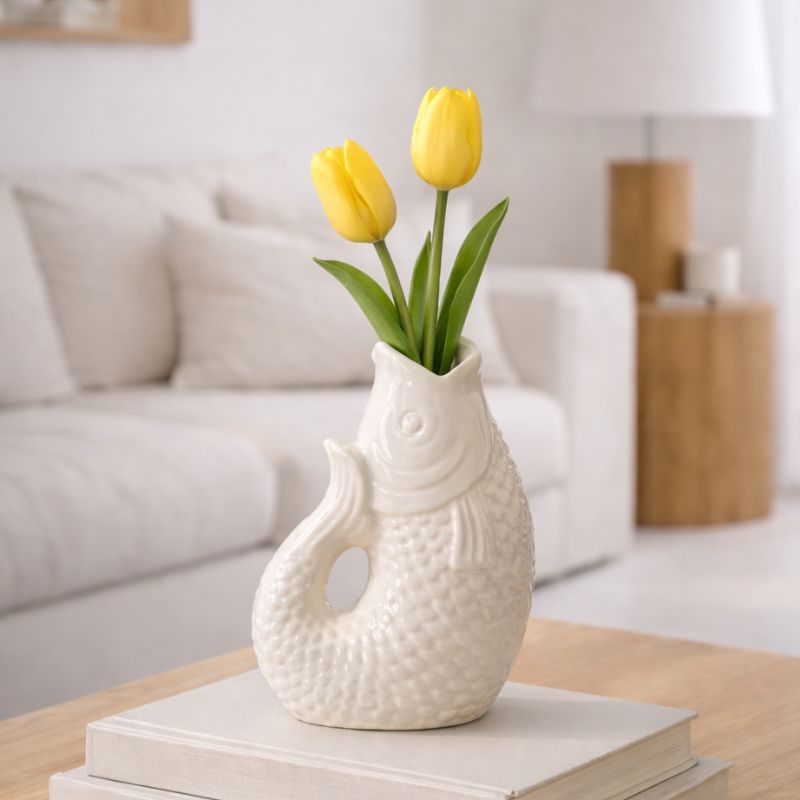 Ce vase poisson blanc cassé s’intègre parfaitement dans un intérieur qui aime les pièces fortes et les objets qui ont du caractère. À la fois tendance et plein de personnalité, il apporte une note fun et élégante à votre décoration.