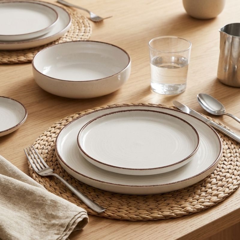 En céramique beige, elle est rehaussée par un liseré brun qui lui apporte du caractère et une finition élégante. Un détail discret qui fait toute la différence sur la table.