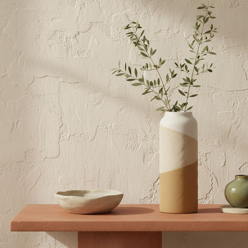 Craquez pour le vase tricolore DUNE et ses teintes subtiles de beige, marron et blanc qui en font un objet unique et raffiné.